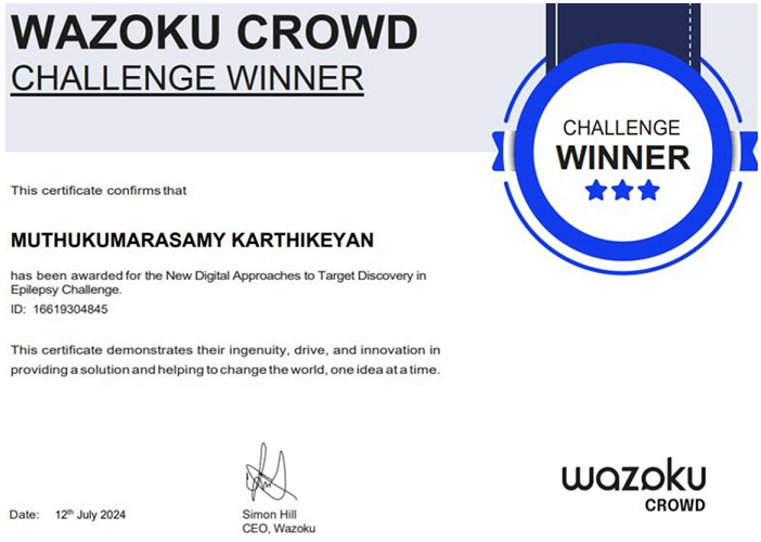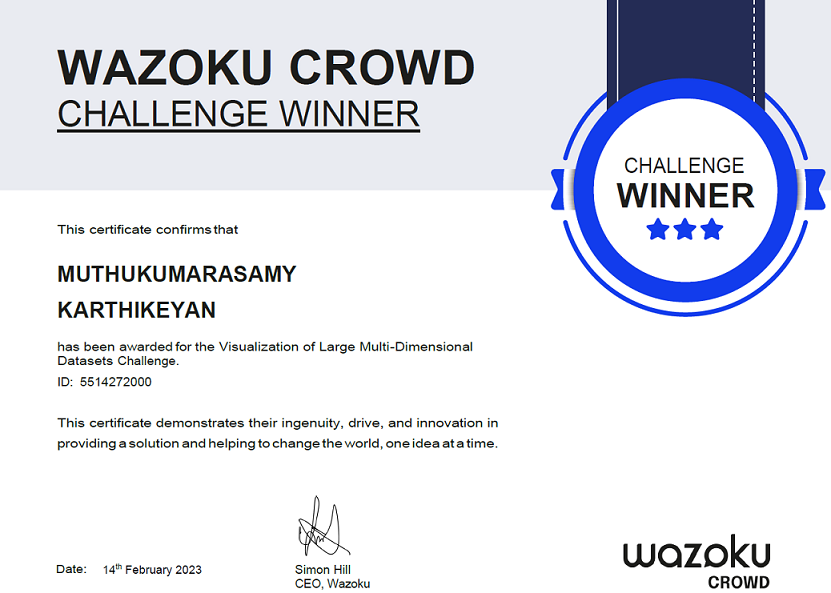 2) WAZOKU global award for the year 2023 for solving problems related to BIG